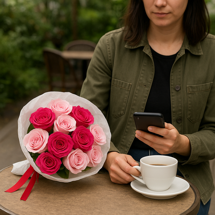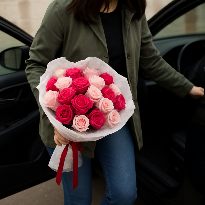 This bouquet is made for someone you adore deeply, the person who turns everyday moments into something unforgettable. A lush mix of pink and fuchsia roses, it is a romantic expression of affection and devotion. Choose this bouquet for its rich color harmony and full, generous shape that speaks straight to the heart. It is the perfect way to say I’m yours with beauty and sincerity.