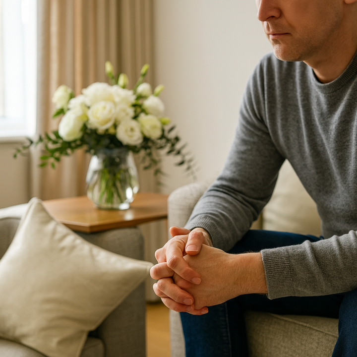 This gentle arrangement is created for offering comfort to someone going through loss. Soft white blooms and calming greenery rest in a clear glass vase, bringing a quiet sense of peace to any space. Choose this design when you want something understated yet deeply thoughtful, a simple and elegant way to express sympathy with grace and sincerity.